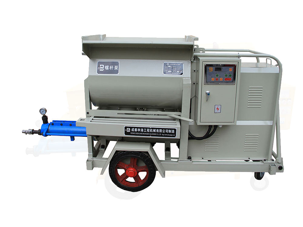 該泵結(jié)構(gòu)新穎、構(gòu)思獨(dú)特;避免了灌注稠漿較困難的不足,使用安全方便、效率高。本機(jī)主要由攪拌機(jī)構(gòu)、增壓機(jī)構(gòu)及電控系統(tǒng)等組成,其特點(diǎn)如下: