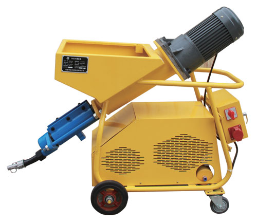 本機結構新穎、構思獨特;避免了灌注稠漿較困難的不足,使用安全、方便、效率高。本機由電動機、減速器、料斗、增壓定子總成、注漿管和電氣系統等組成。當用于濕噴時,還包括噴射器和空壓機(用戶可選配),其特點如下: